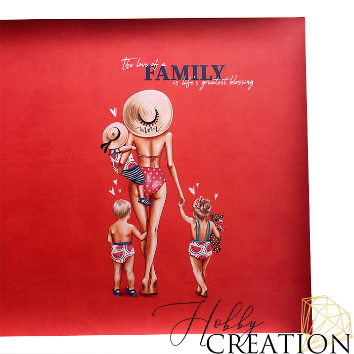 - *Кожзам с принтом "Super mom / блондины" 30*46 см., матовый кораллово-красный