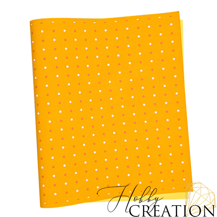 - Кожзам с принтом "Горошек" 26*46 см. тиснение под кожу Шарм, оранжевый