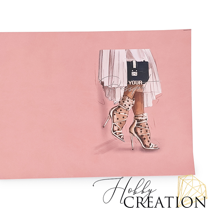 - Кожзам с принтом "Fashion Valentino" 18*28 см. матовый II, пудрово-розовый