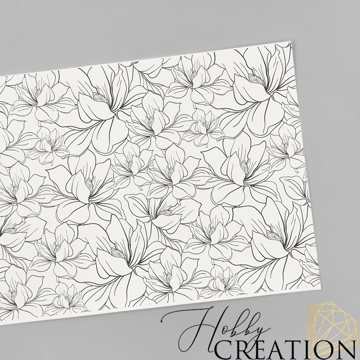 - Кожзам с принтом "Магнолии" 18*28 см. тиснение под кожу II, белый