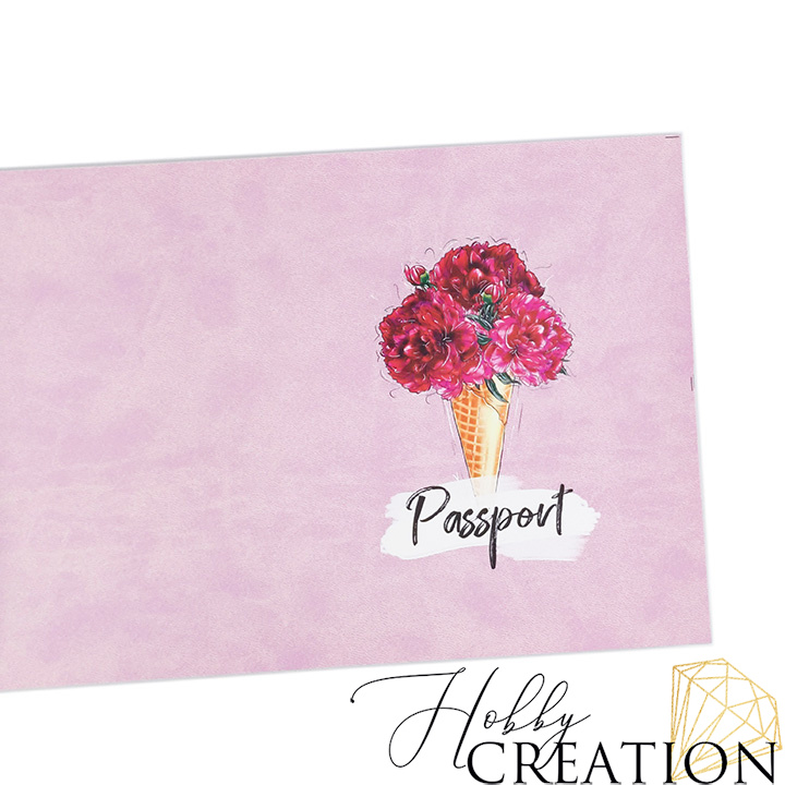 - Кожзам с принтом "Пионы в рожке" 18*28 см. матовый II, сиренево-розовый