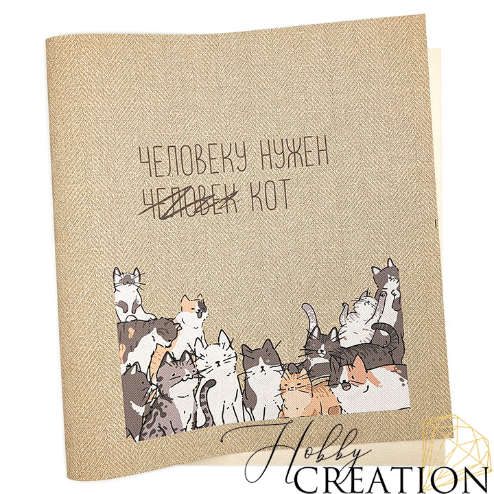 - Кожзам с принтом "Человеку нужен кот" 26*46 см. тиснение Твид, латте