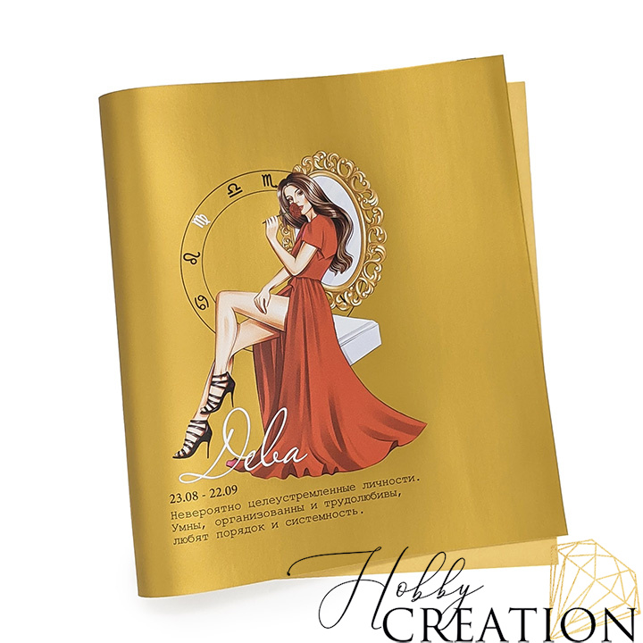 - Кожзам с принтом "гороскоп дева / Тесса брюнетка" 26*46 см. матовый однотонный, матовое золото