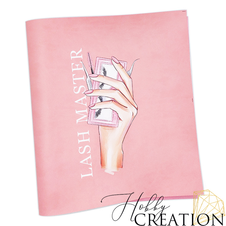 - Кожзам с принтом "Lash master" 26*46 см. матовый II, пудрово-розовый
