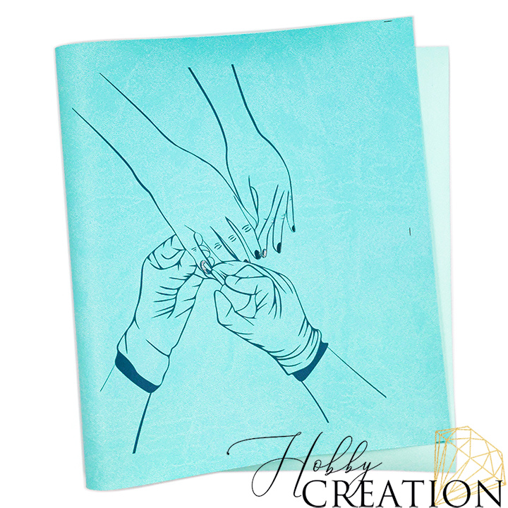 - Кожзам с принтом "Маникюр" 26*46 см. матовый, тиффани