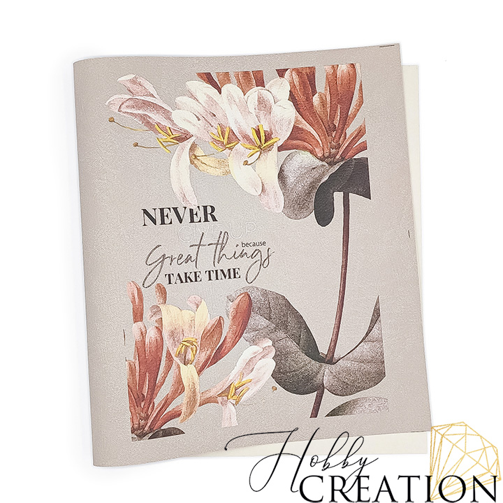 - Кожзам с принтом "Никогда не сдавайся" 26*46 см. тиснение под кожу Шарм, серо-розовый