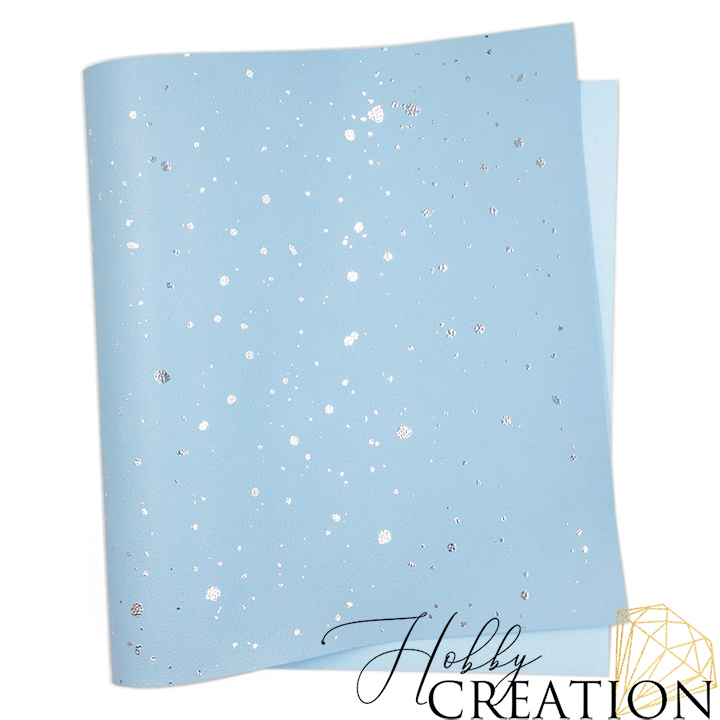 - Кожзам с принтом "Серебряные брызги" 26*46 см. тиснение под кожу, светло-голубой