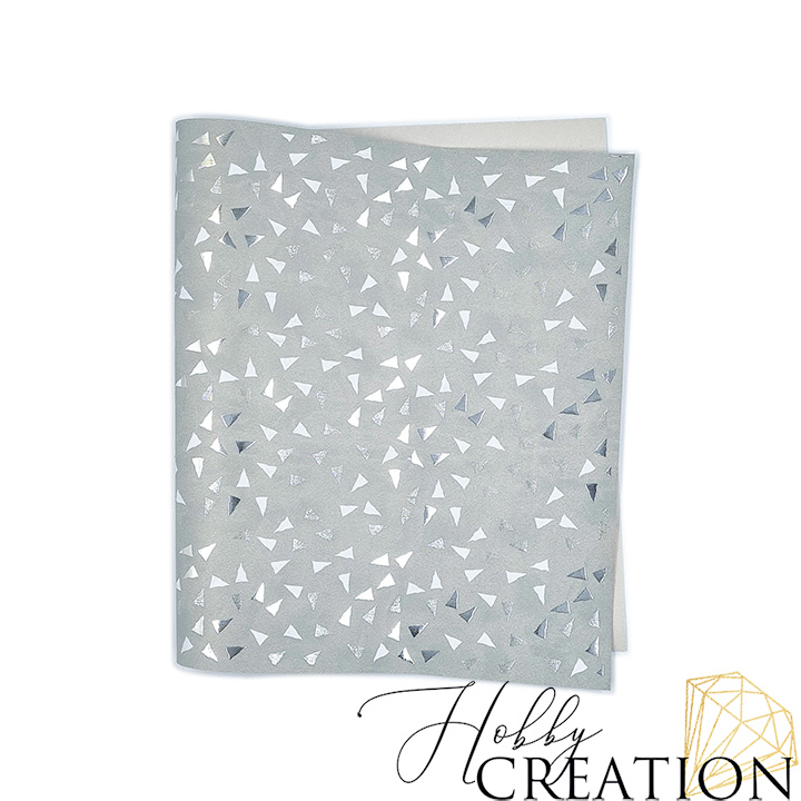 - Кожзам с принтом "Треугольники / серебро" 26*46 см. матовый II, платина